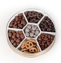 $25.00 Decorative Tin with Chocolate Covered Nuts (2.25 lbs.):